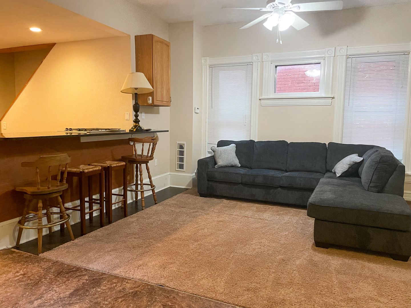 306 Campbell Street is a five-bedroom, fully-furnished house with two remodeled kitchens and two full baths. The living room comes complete with flat-screen TV and the laundry room has a free use washer and dryer.