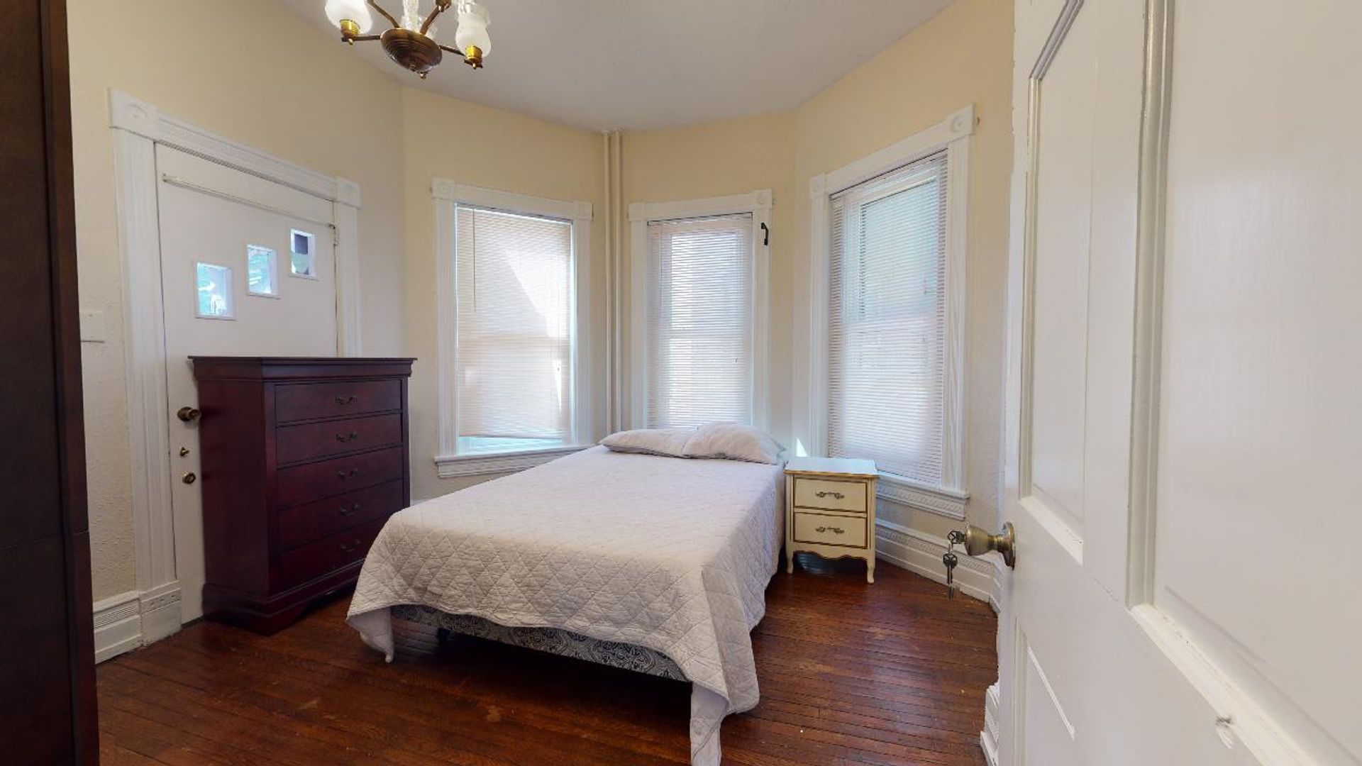 Bedroom 2: First floor bedroom ( 11.8 x 12) with full size bed, dresser and night stand.
