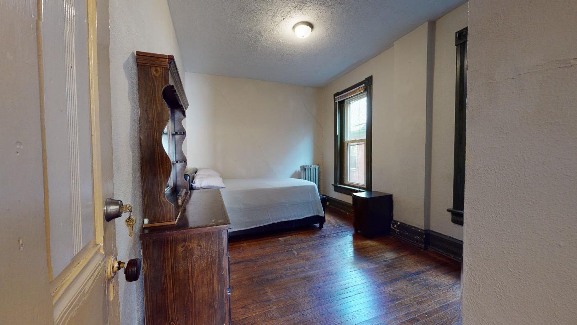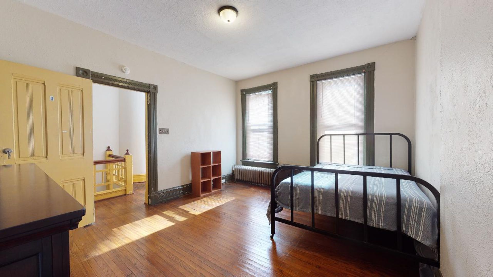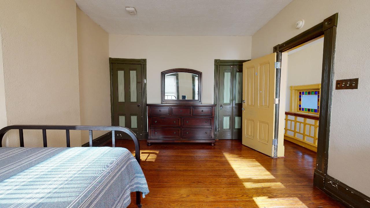 Bedroom 5: Second floor bedroom (13.3 x 9.9) with full size bed, dresser, night stand and book shelf.