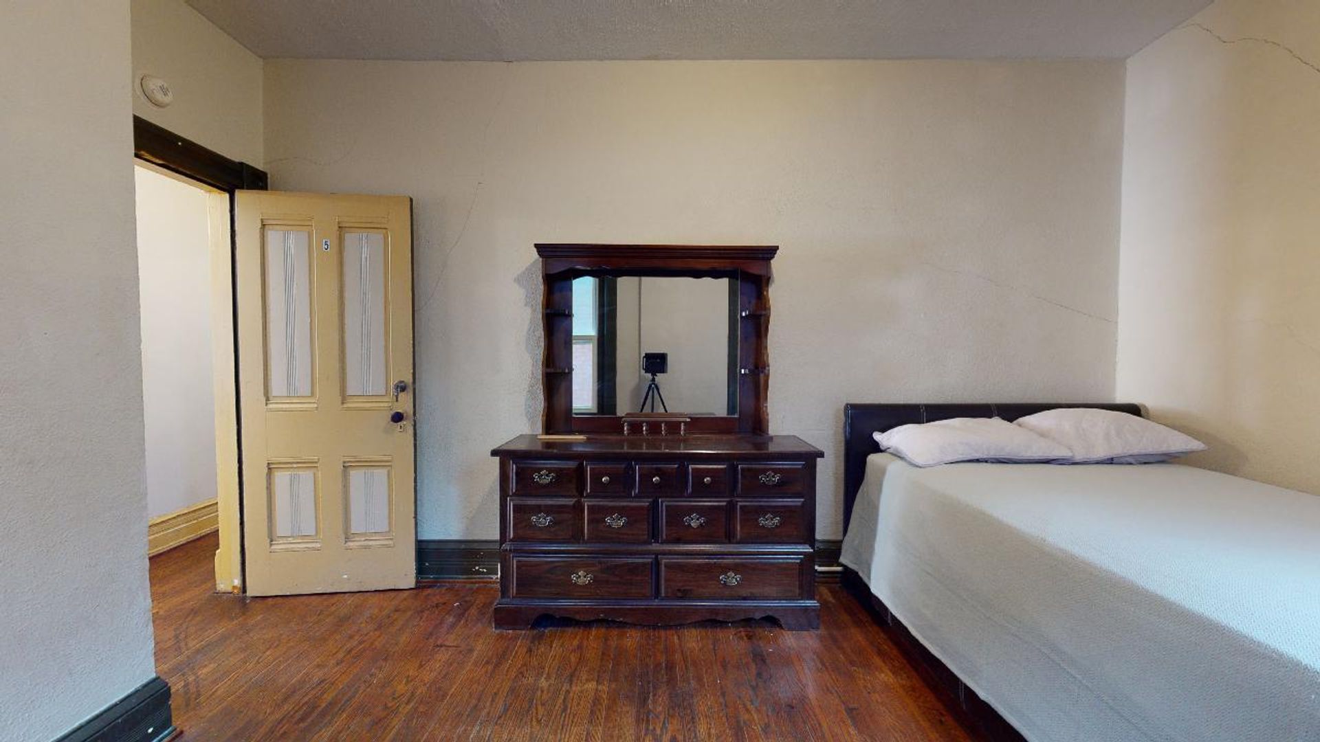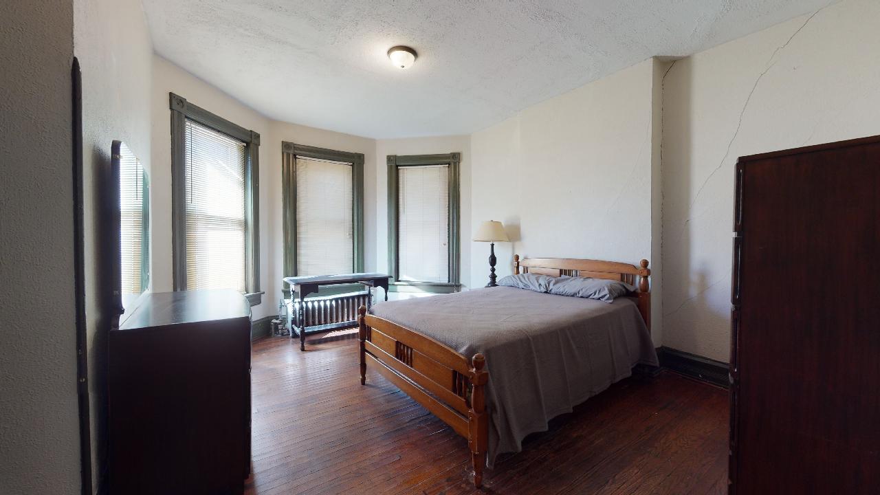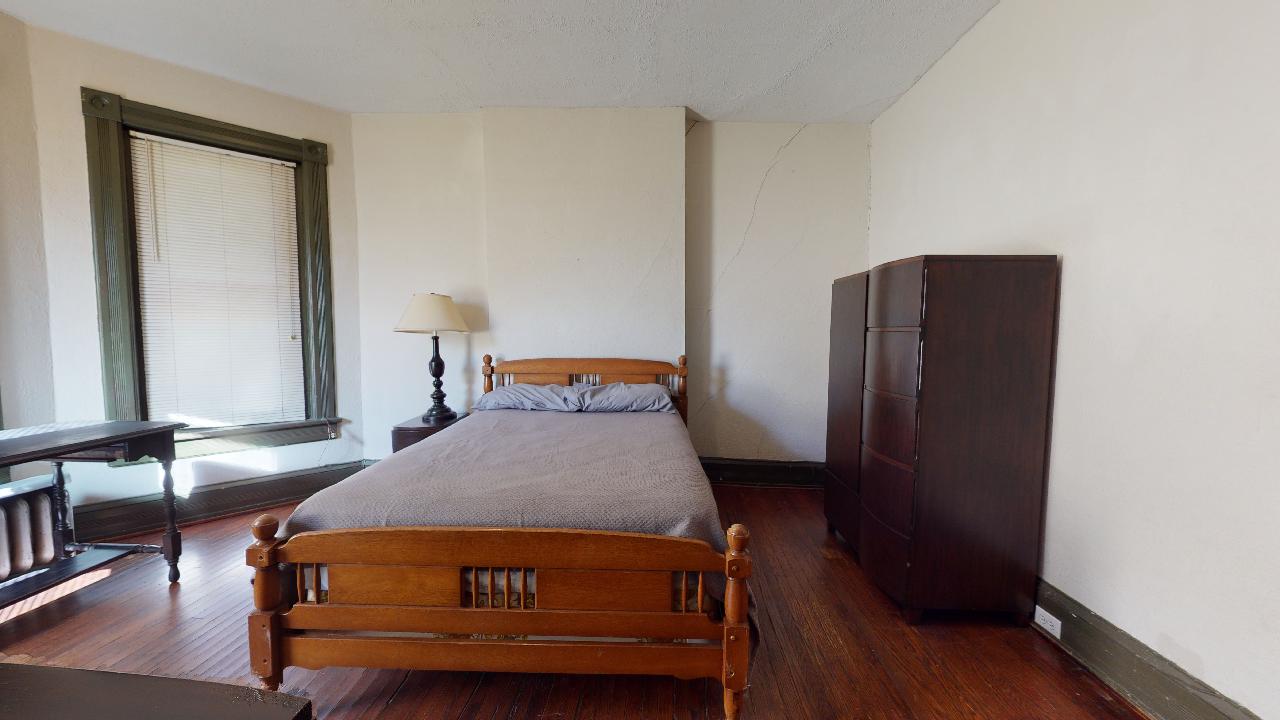 Bedroom 4: Second floor bedroom (16.1 x 11.8) with full size bed, two dressers, desk/chair.