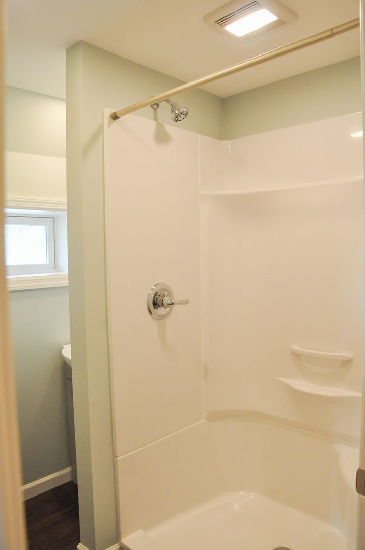 Bath: (6' 4" X 5' 3") includes stand-up shower with seat and built-in shelves for storage