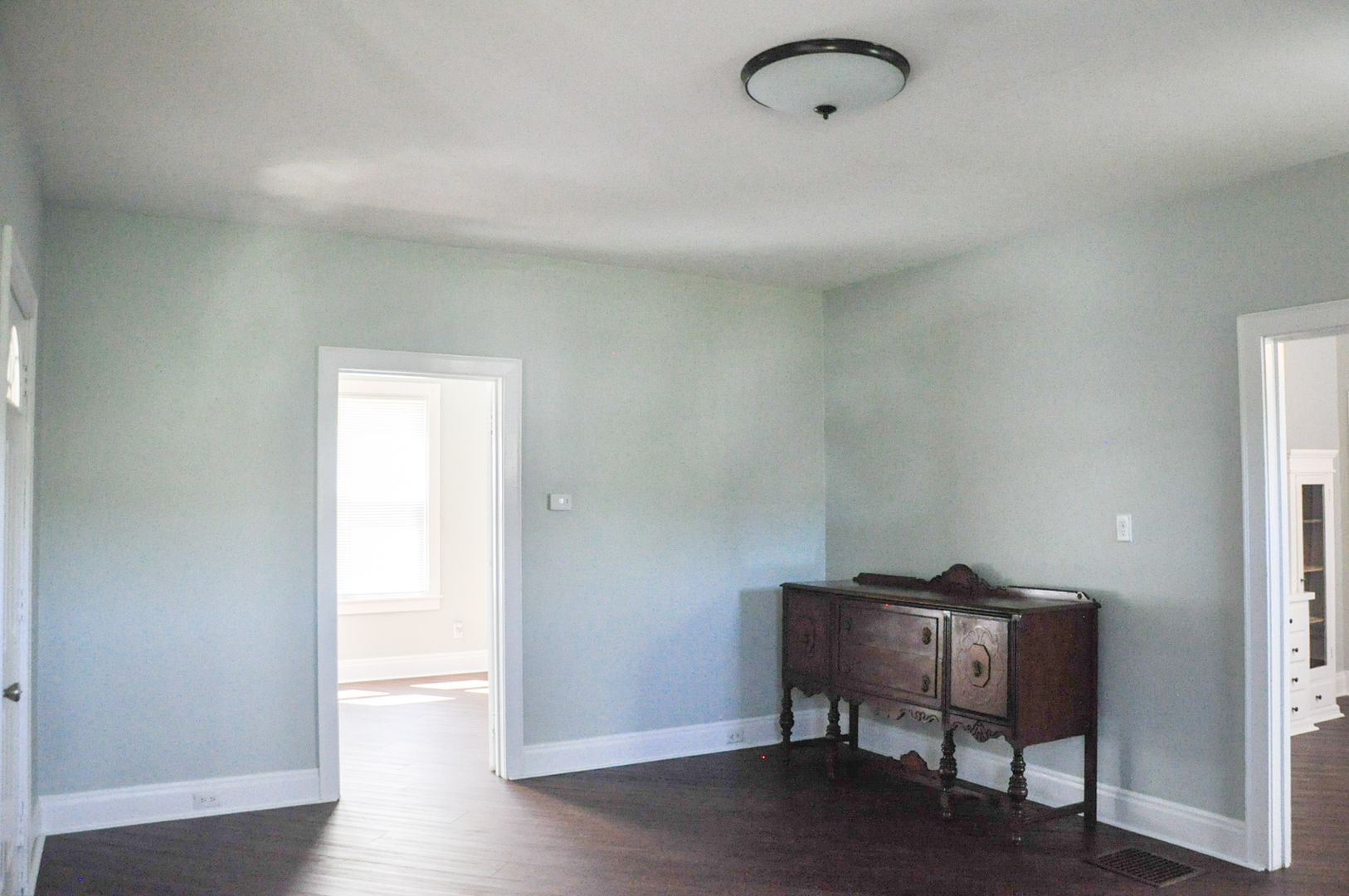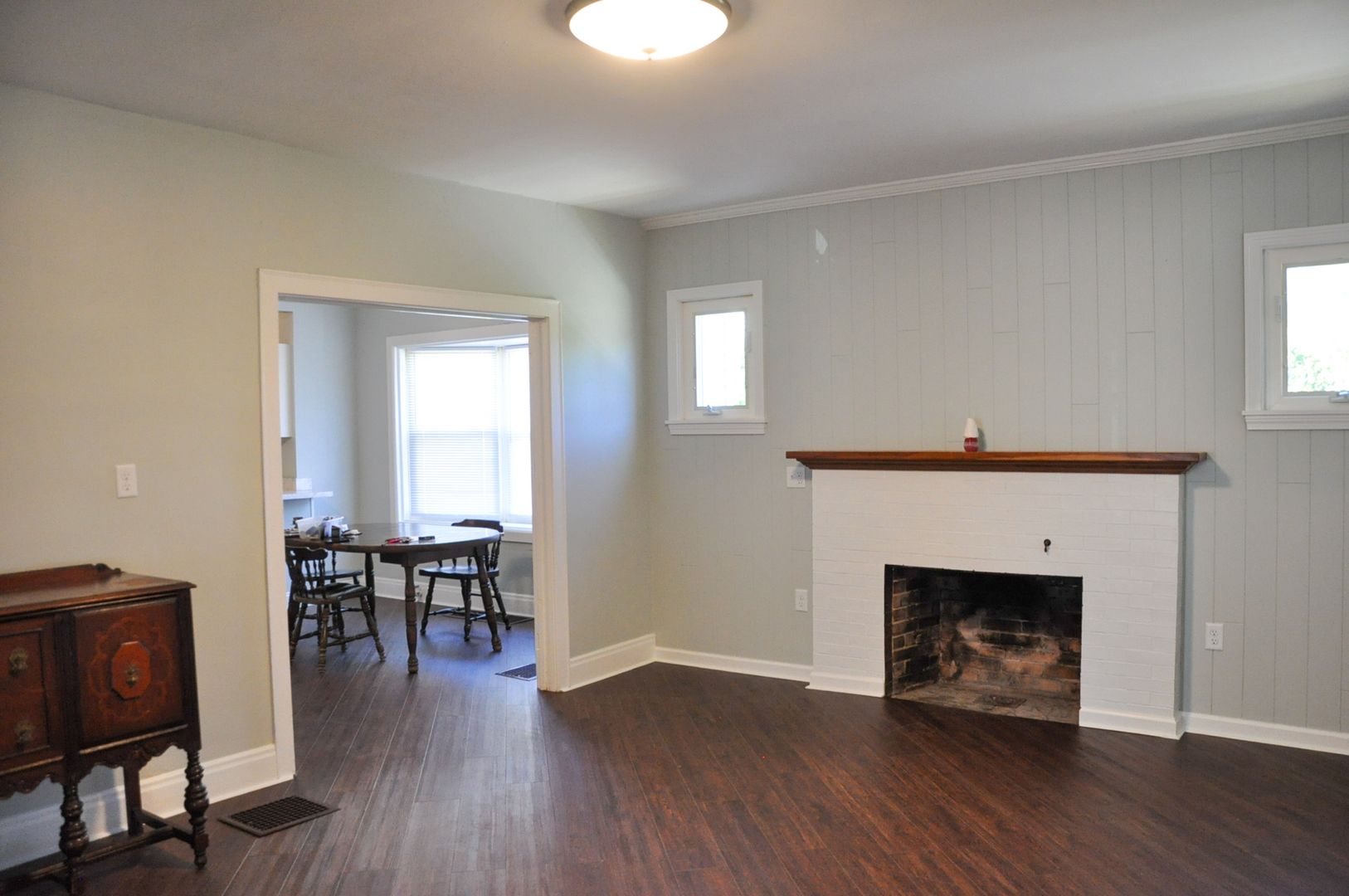 Living room: (17' 4" X 13' 5") includes a non-operating fireplace and and beautiful antique sideboard