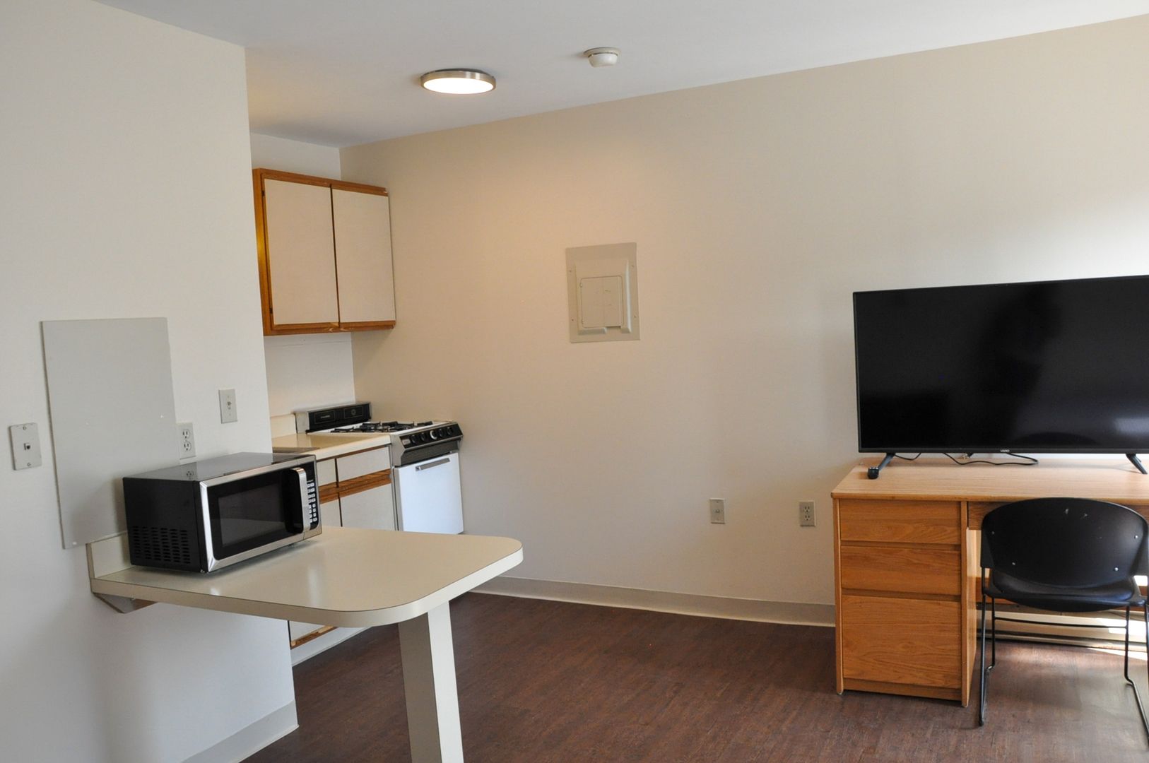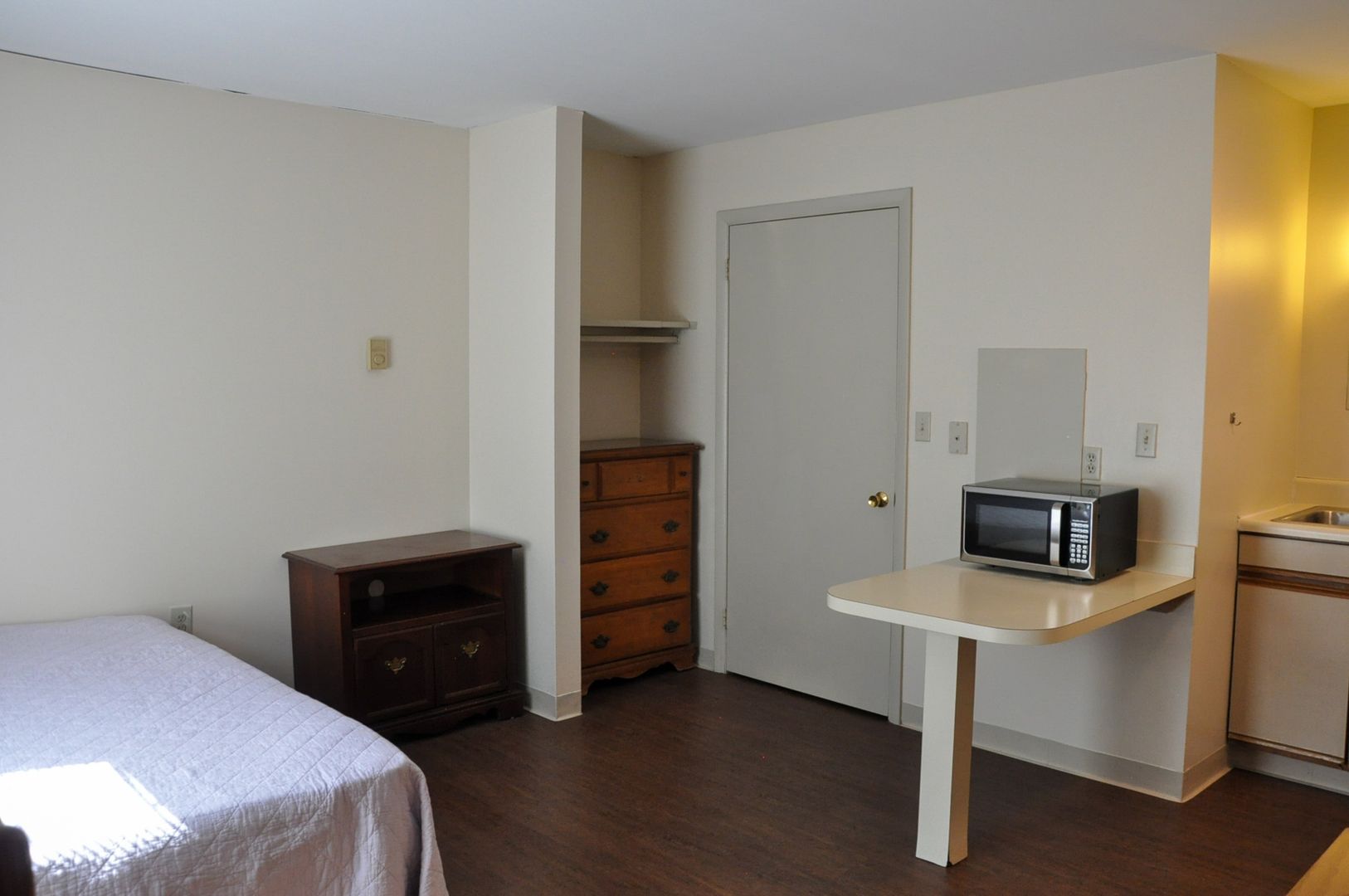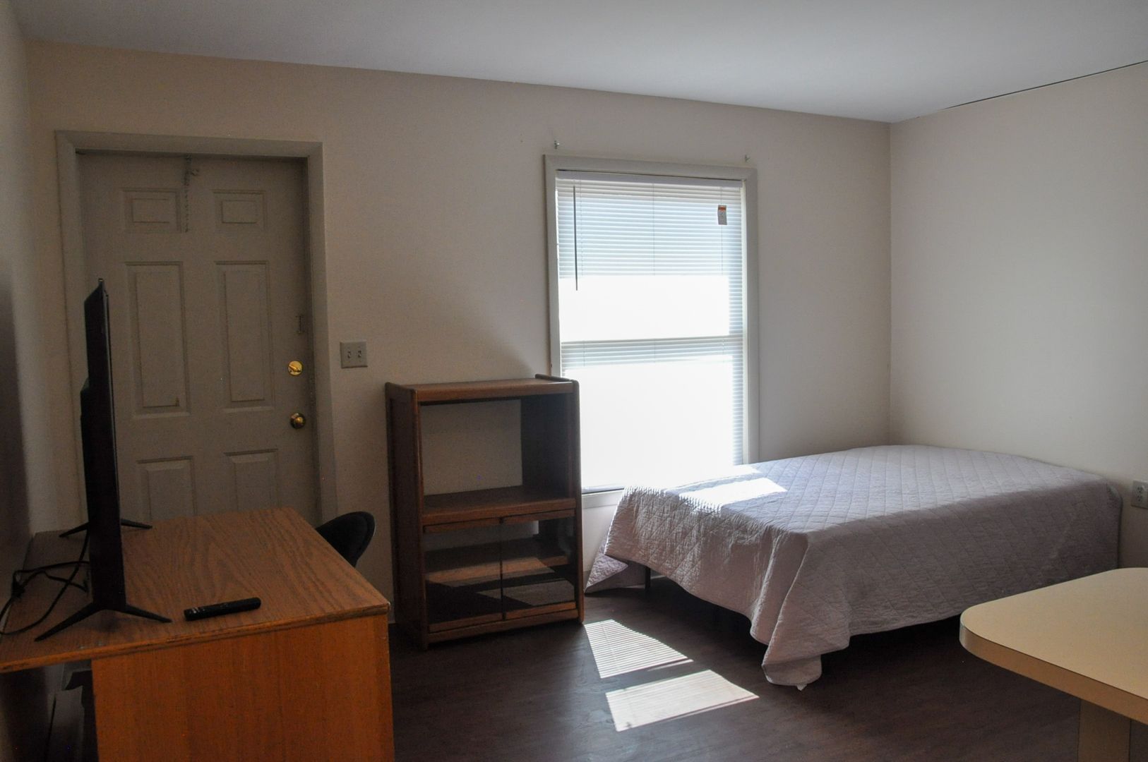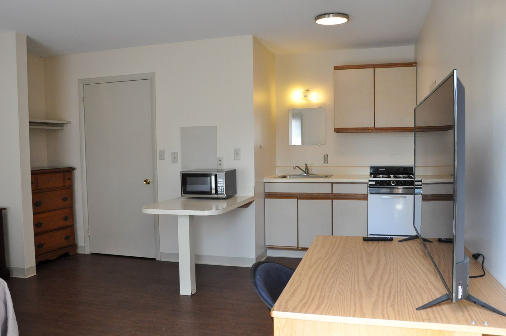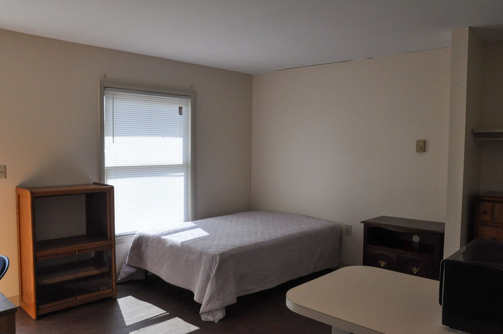 948 W Third St, Apt 6 is an efficiency apartment. Unit measures 15' 9" X 14' 4".  This unit is fully furnished with a full bed, night stand, desk & chair, dresser, full size refrigerator, stove, microwave, built in table. Laundry is available next door at 946 W Third St.