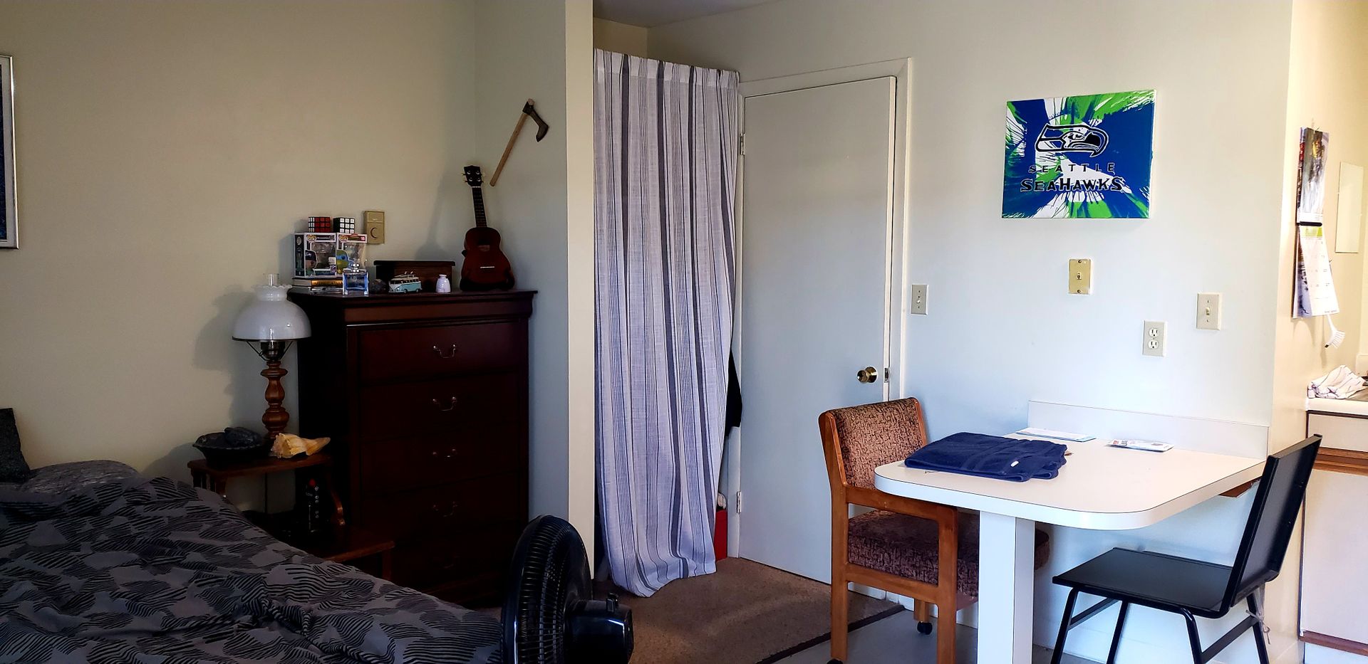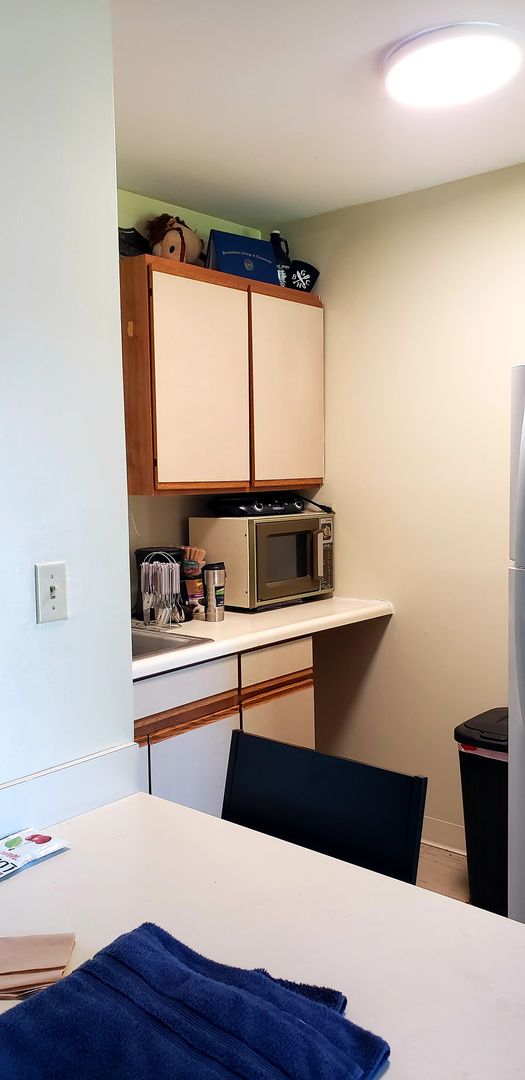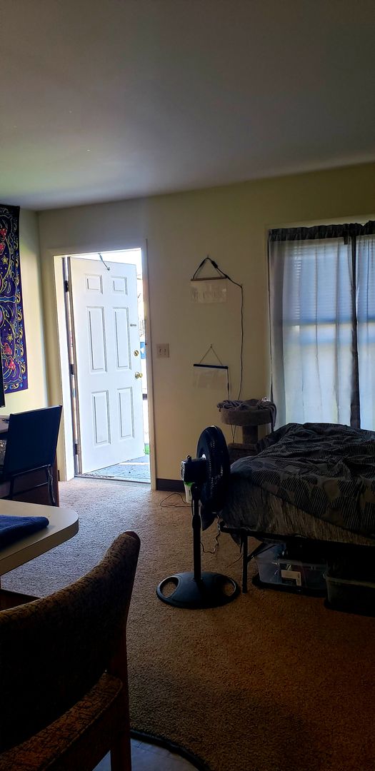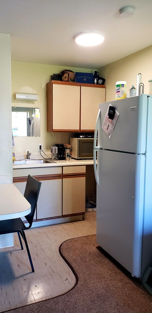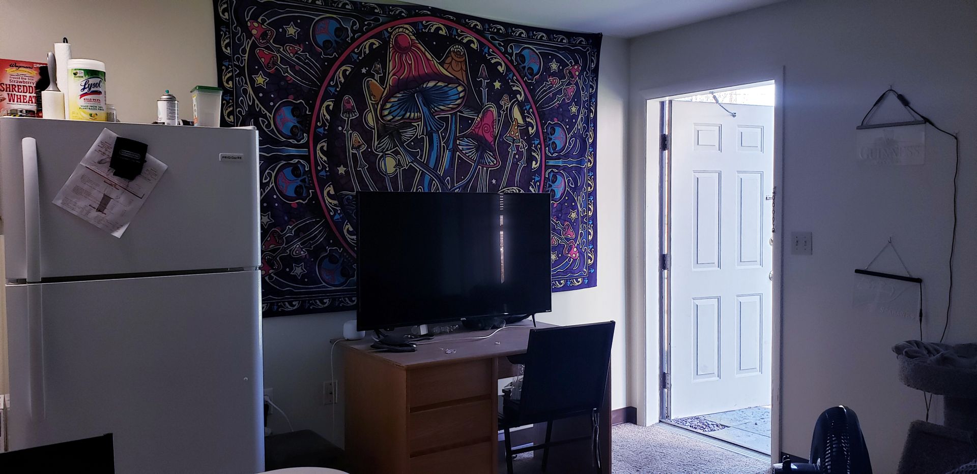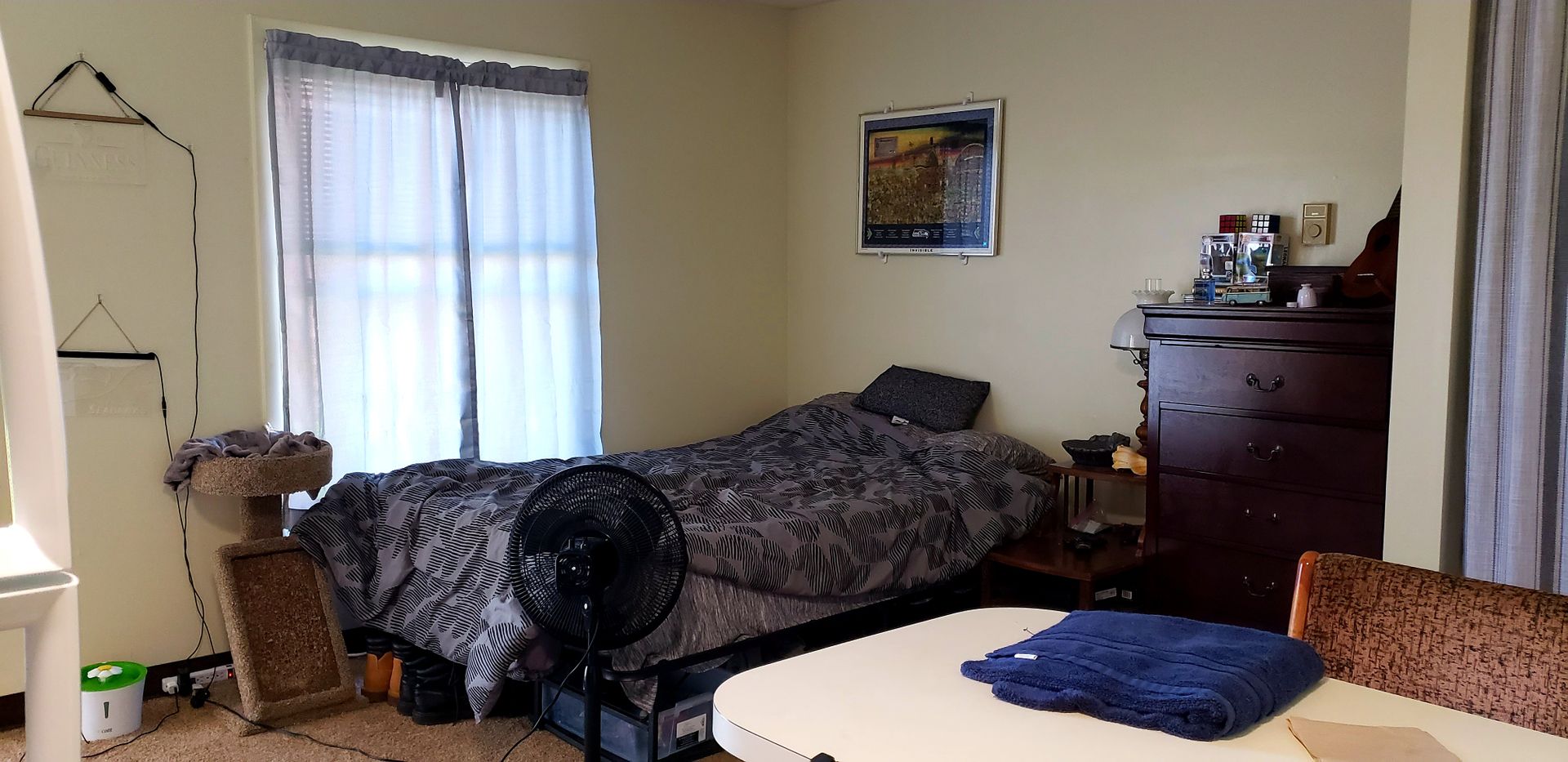 948 W Third St Apt 4 is an efficiency apartment. This unit measures 14' 3" X 15' 9" and is fully furnished with a double bed, night stand,  desk, dresser full size refrigerator, microwave.