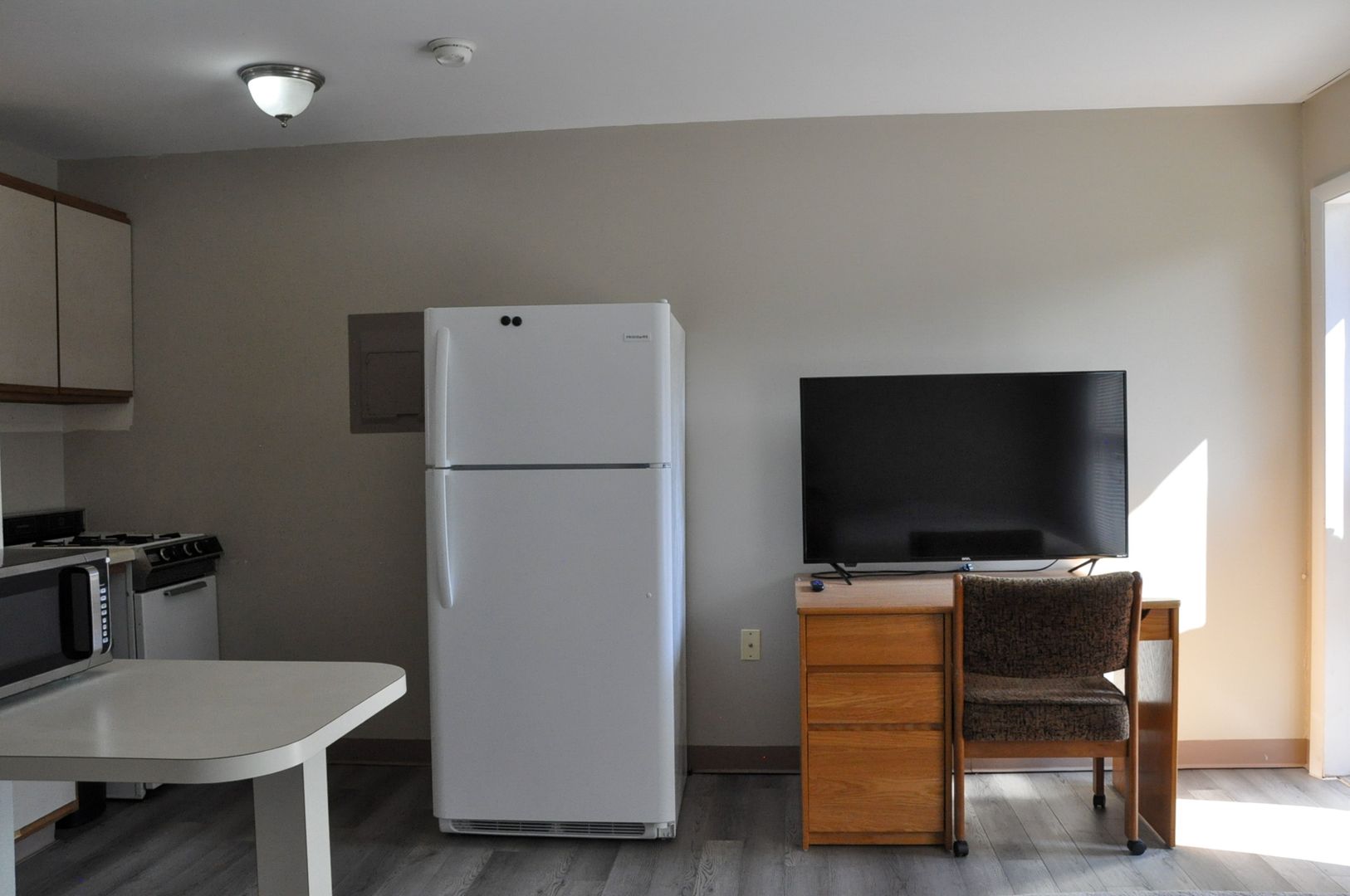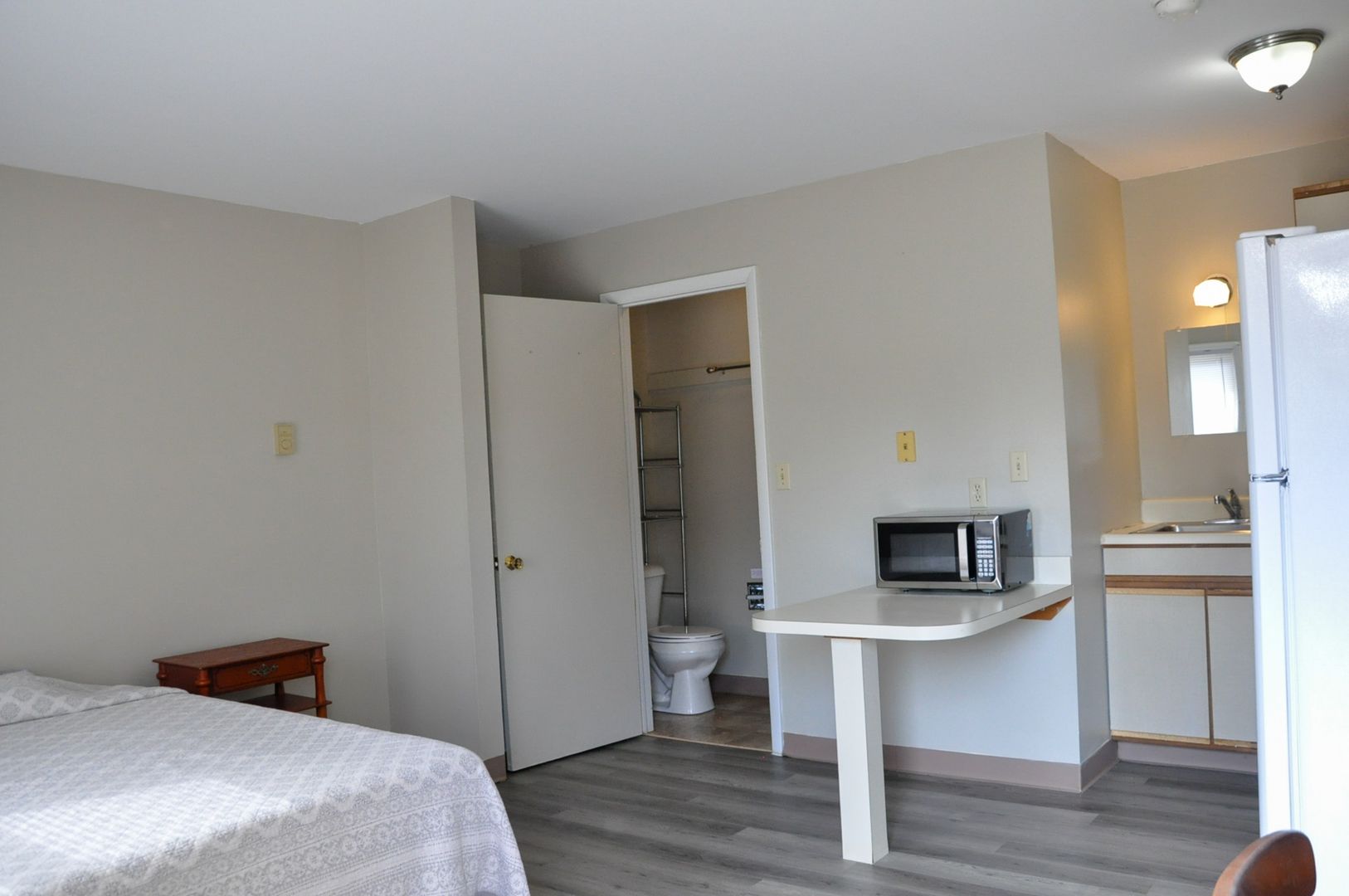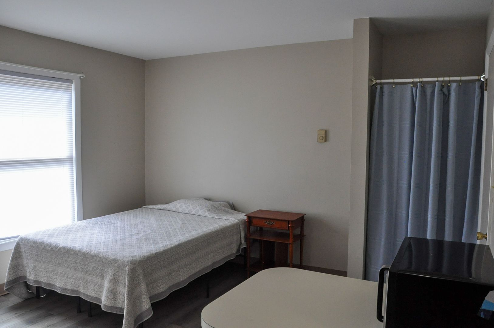 948 W Third St, Apt 5 is an efficiency apartment. Unit measures 14' 3" X 15' 9".  It is fully furnished with a full bed, night stand, desk, dresser, full sized refrigerator, microwave, stove.  Laundry available next door at 946 W Third St.