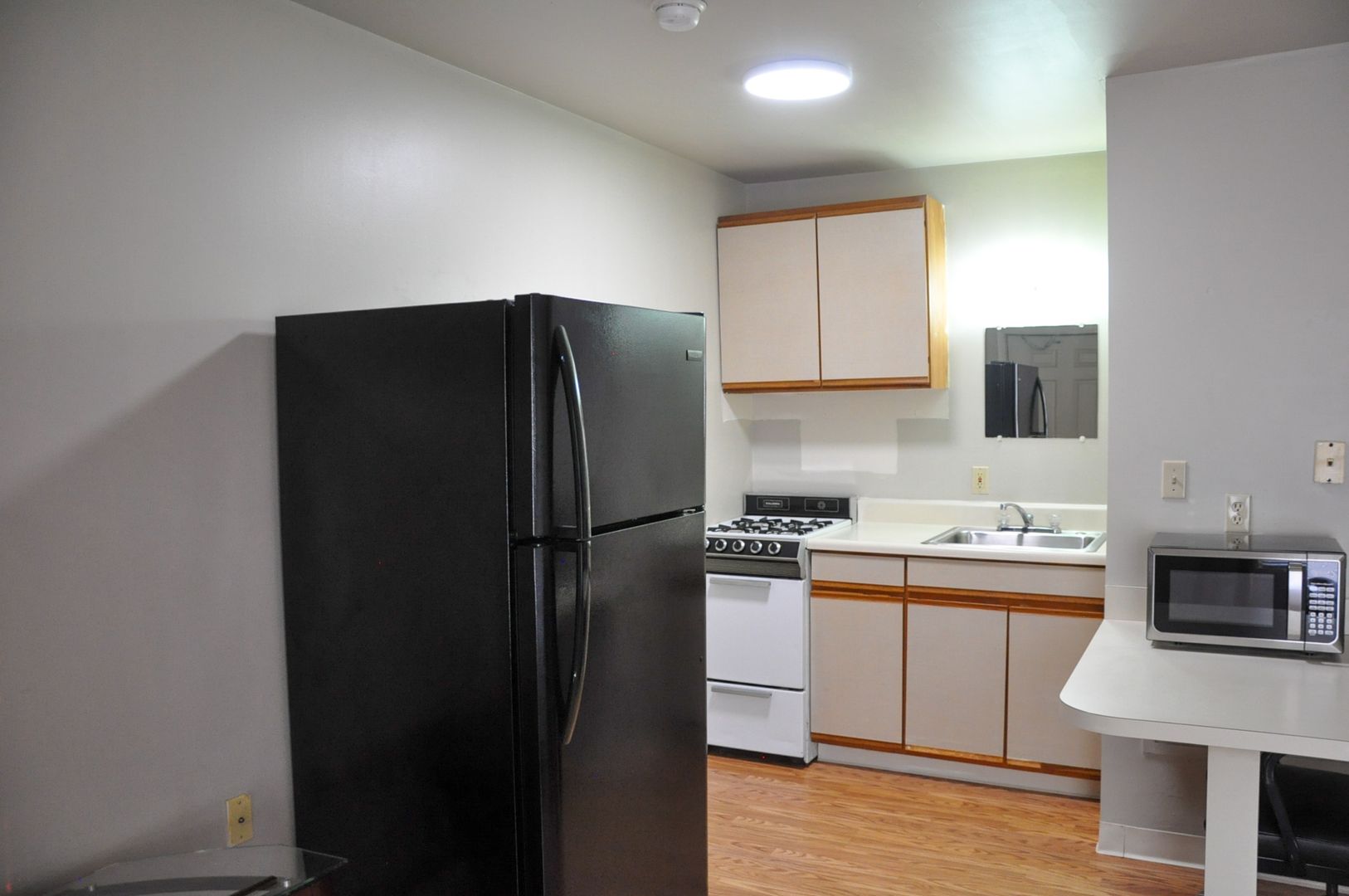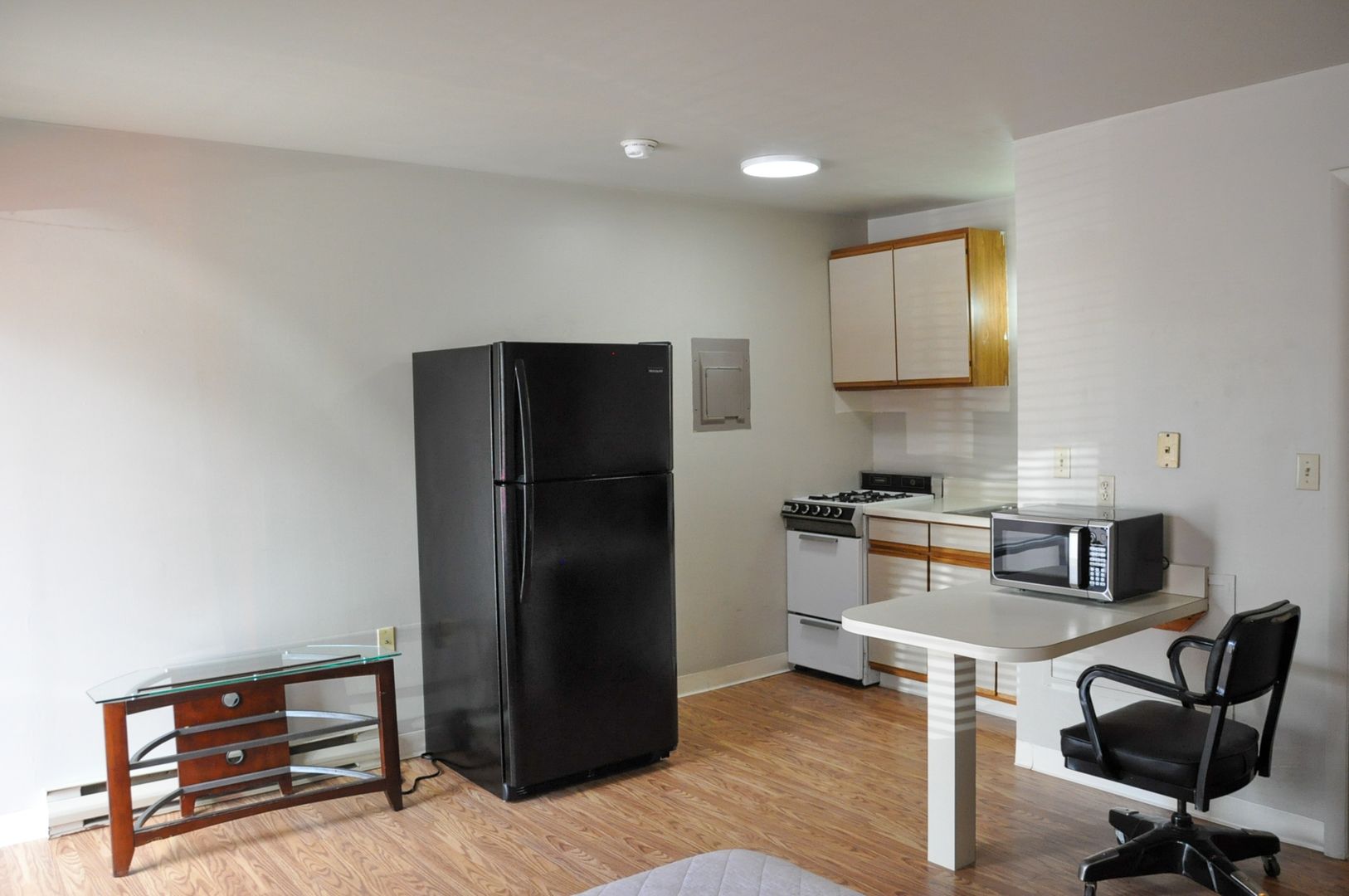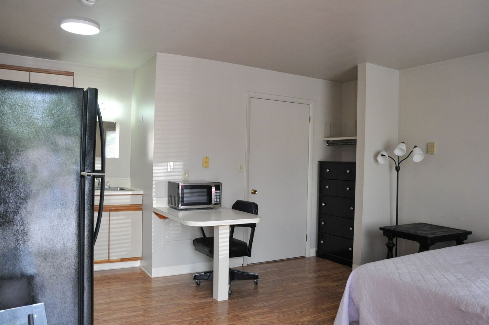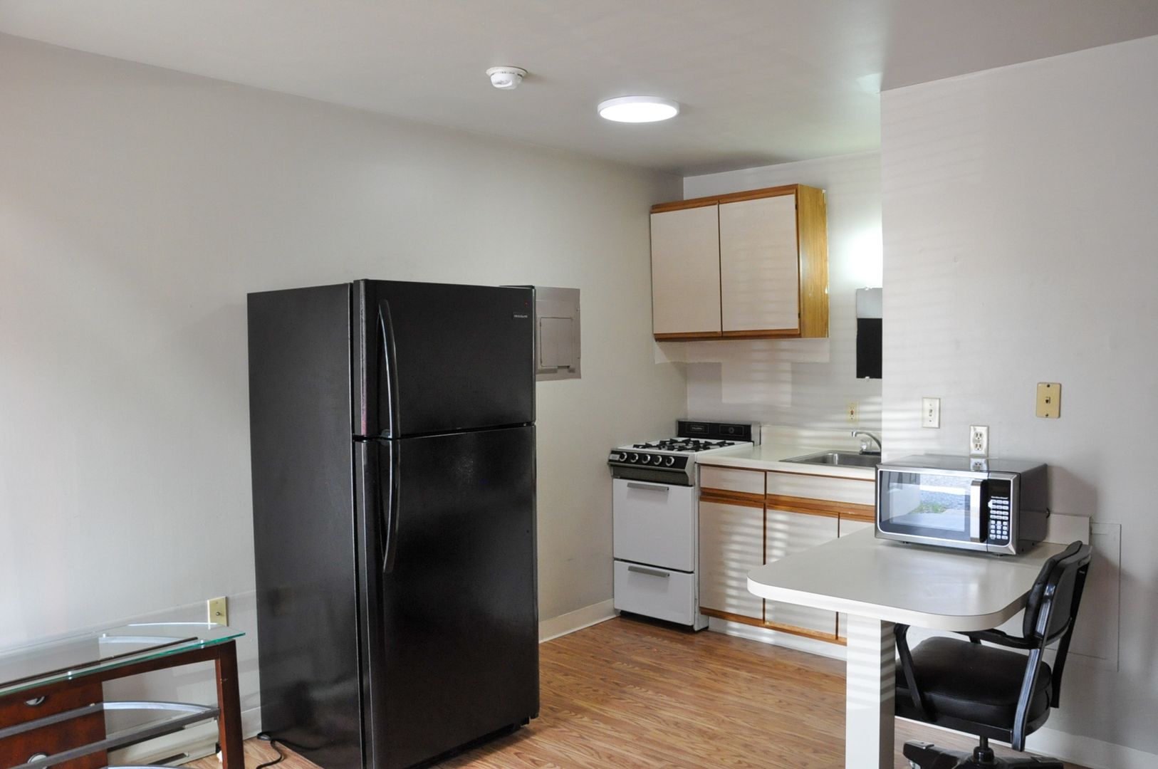 948 W Third St, Apt 12 is an efficiency apartment. The unit measures 14' 4" X 15' 9".  It is fully furnished with a full bed,  dresser, microwave, full refrigerator, stove, table and chair.   Laundry is available next door.